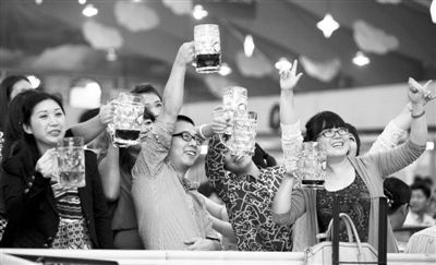 活动负责人介绍说,在啤酒节上除了广受欢迎的德国黑啤之外,国产的燕京啤酒的销量也颇为可观。
