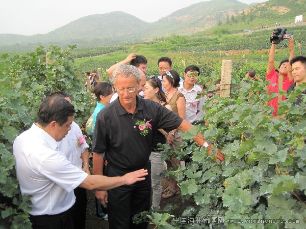 8月9日,国际葡萄与葡萄酒组织主席伊维斯 贝纳受卢龙县政府邀请亲临自己在柳河山谷的一亩葡萄园观看葡萄园情况,并与卢龙县政府领导、企业合影。