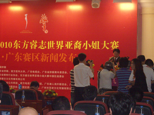 2010年5月21日,2010年“擎酒杯”东方睿智世界亚裔小姐大赛广东赛区正式拉开序幕新闻发布会在广州南方医科大学隆重召开。广东省侨联、南方医科大学、广东省模特行业协会、广东电视台相关领导出席大会;亲自启动“大赛”象征着“吉祥”“和谐”的水晶球,并预祝大赛圆满成功。