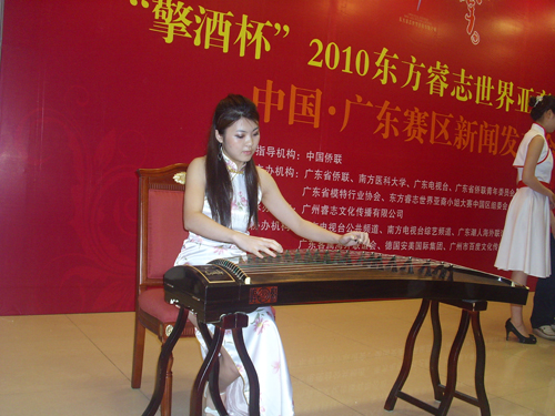 发布会现场,孙中山、毛泽东、周恩来、邓小平、蒋介石的扮演者谢明德、赵友清、邓健壮、赵新民戏装亮相,在歌曲《东方红》的伴奏下,宣读大赛宗旨;广东电视台总监韩向建与09年广东赛区选美大赛冠军得主甘冷玉小姐分享大赛感言;中国毛体书法家协会 中国书画李建明副主席现场为大赛题字,中华书法与东方魅力融合成一道韵味十足的中国之音。
