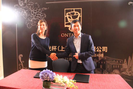 品鉴会上MGC夜光杯酒业公司CEO黄志鹏与Bodegas Ontanon(中译名:望隆酒庄)少庄主正式签约,MGC成为中国大陆及中国香港的独家代理销售商。
