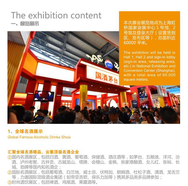 国内名酒展区,包括白酒、黄酒、国产葡萄酒、保健酒、酒庄酒等;