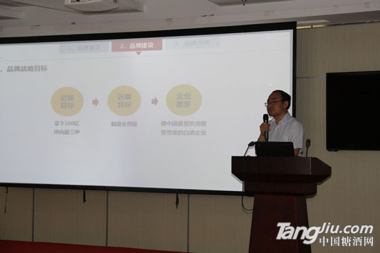 随后,亳州古井销售公司总经理助理张怀贵先生登台为在座的经销商们分享古井的品牌文化,从业务范围到战略规划,将新时期的古井全方位立体化的呈现在大家面前。