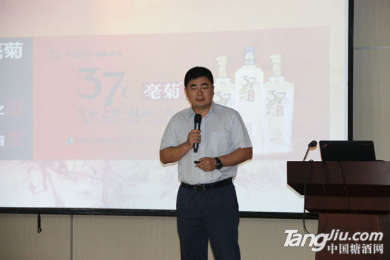 在经销商们系统的了解了古井之后,亳州古井销售有限公司总经理助理罗天祥先生登台为大家详细介绍了37°亳菊酒的产品定位及古井新酒商的战略规划。