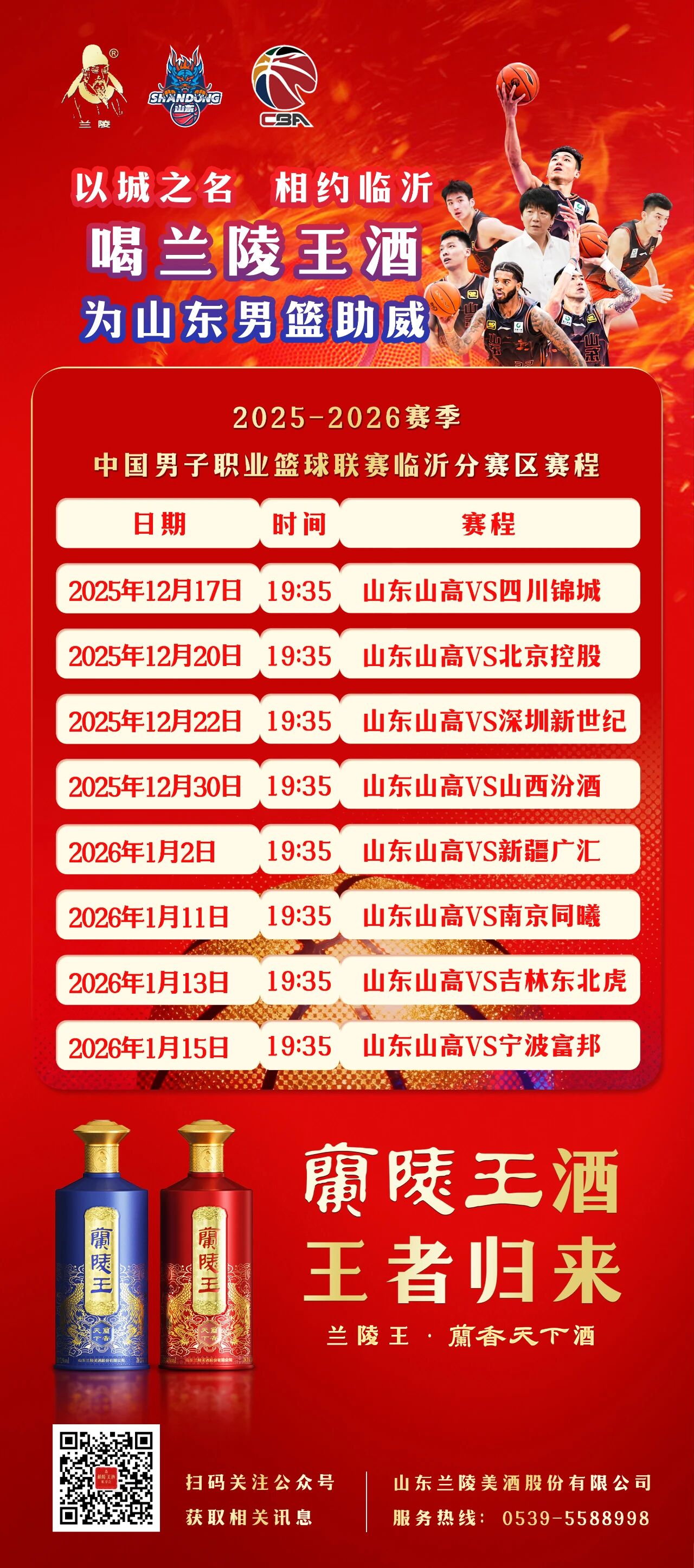 这个冬天,让我们继续以城市之名,为山东而战!让兰陵王酒的醇香继续飘荡在每一个热血沸腾的赛场,共同书写属于山东男篮的新传奇!